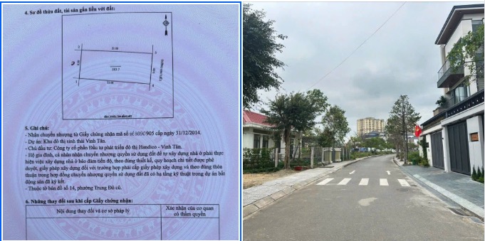 AN CƯ LẠC NGHIÊP . BÌA CÁ NHÂN HIẾM B.án lô đất Nhà vườn khu đô thị Handico Vinh Tân. Pháp lý đã có bìa đỏ cá nhân. Chuyển nhượng tự do. Diện tích 184m2. Hướng Đông tứ mệnh (RẤT HIẾM) Đường rộng 9m có vỉa hè. Hạ tầng đồng bộ.. Tài chính 8,xx tỷ.