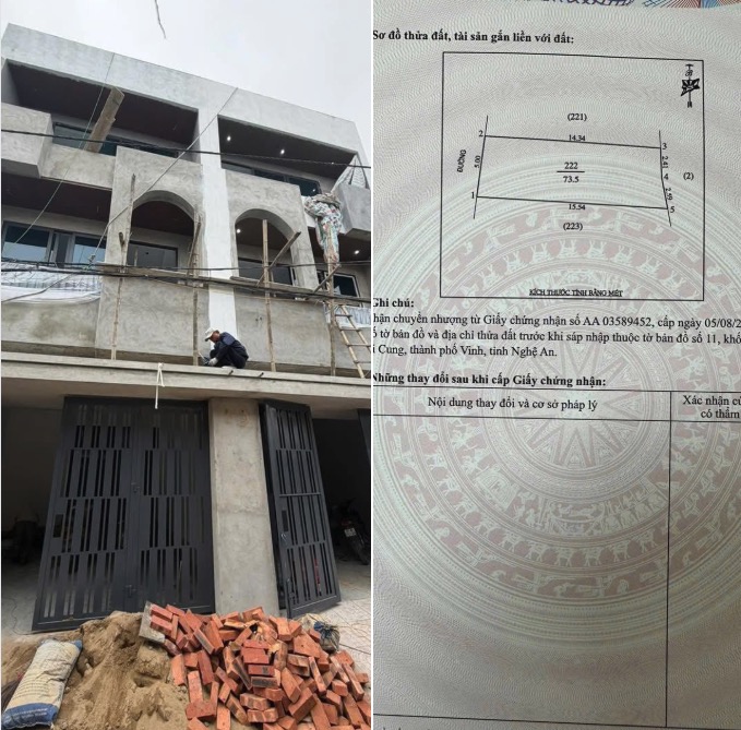 Bán nhà 3 tầng 73.5m2 hướng Tây bắc, Đội cung, vinh ,nghệ an